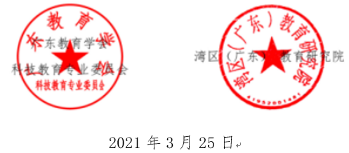 为落实习近平总书记关于科技创新工作重要讲话的精神,把科技创新教育工作落到基础教育实处,为将来培养创新型人才奠定坚实的基础,实现中华民族伟大复兴的强国之梦,广东教育学会科技教育专业委员会、湾区(广东)教育研究院经报上级主管部门批准,特举办首届广东省科技创新教育论坛。具体通知如下: